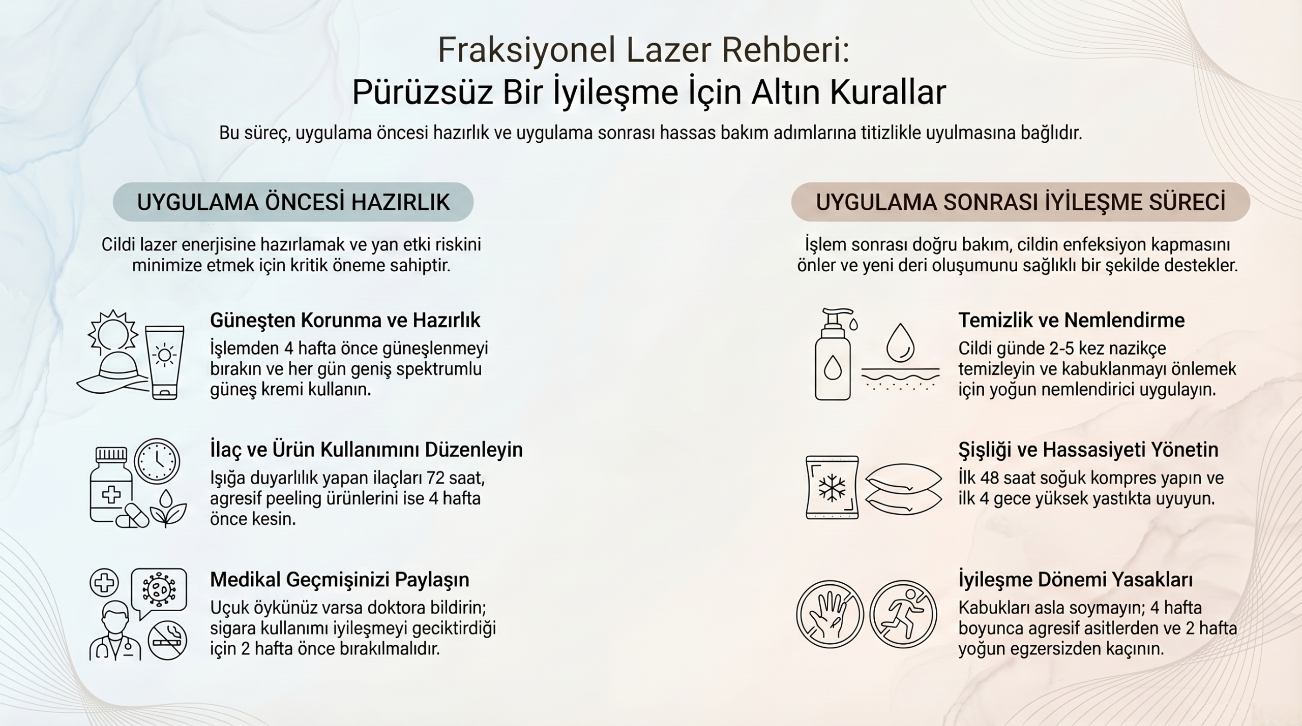 İşlem sonrası bakım, cildin sağlıklı iyileşmesi ve enfeksiyon riskinin azaltılması için kritiktir: